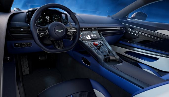 Промените в дизайна са фини, но DB12 S се отличава с двуелементен преден сплитер, който помага за визуално понижаване и разширяване на автомобила, като същевременно осигурява допълнителна притискаща сила. Те са съединени с вентилиран капак, който е с ламели в гланцово черно или карбоново покритие.