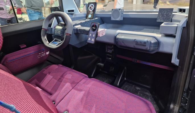 Взаимстваният дизайн от офис столовете не е приумица, напротив, цялото вътрешно оформление е подчинено на това в модерния офис днес. Това важи с пълна сила за конфигурацията на арматурното табло, която може да се променя. Подлакътниците на вратите са заменени от преносими мини чанти за лаптоп, в които може да сложите различни вещи, да подпирате ръката си на тях по време на движение, а след като спрете да ги дръпнете и просто да ги вземете със себе си.