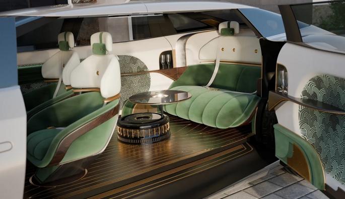 Асистент с изкуствен интелект управлява климата, осветлението, ароматизатора и окачването, оставяйки пътниците да правят това, което най-много им харесва, което може да е да отпиват коктейли, да броят парите си или да печелят повече от тях.