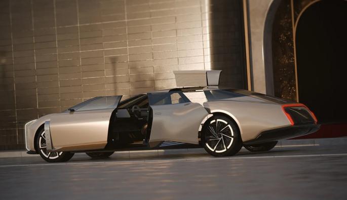 Странната смесица от масивни заострени арки, плосък преден капак, вертикална решетка и задна част тип „лодка“ създават впечатлението, че някой е хвърлил Rolls-Royce Phantom и Corvette С3 от края на 70-те години в дигитален блендер. А вратите? Те се отварят с театрално двойно движение, повдигайки част от покрива, разкривайки интериор, в който идеята за задните седалки, каквито ги познавахме, е напълно изоставена.