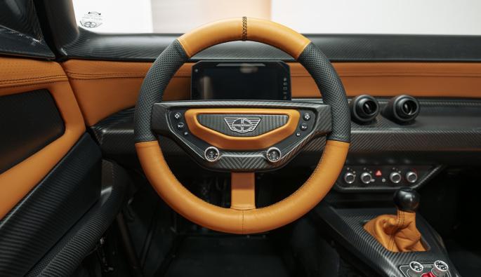 Почти всичко по купето е изработено от карбон, затова е било възможно да се постигне тегло под 800 кг. Има и 3D принтирана метална част - накрайниците на ауспуха са направени по този начин. Donkervoort използва компанията Ex-Core за повечето карбонови компоненти.