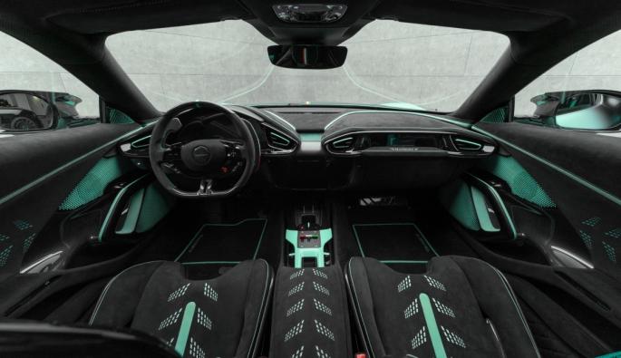 В интериора стилът е продължен, но огледален. Черното доминира, а тюркоазът е акцентен цвят. Добавени са светещи елементи, включително и таван като от Rolls-Royce, симулиращ нощно небе.