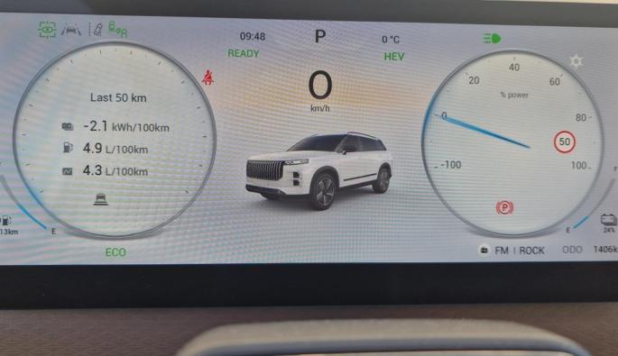 Jaecoo казва, че с един резервоар от 60 л може да се изминат до 1200 км. Разбира се, тук силната част е батерията с капацитет 18,3 kWh. Стане ли въпрос за такъв тип задвижване (електрическо или плъг-ин хибридно), китайците нямат равни. Същата батерия позволява изминаване на „до 90 км“ само на ток, но аз карах само в хибриден режим. Така на борд компютъра видях 4,9 л/100 км разход на бензин за последните 50 км пробег. Няма параметър за цялото пътуване. А то бе около 460 км. При оставащи още 513 км, то без проблем цифрата от 1000 км е постижима. Но с уговорката, че не съм карал магистрала.