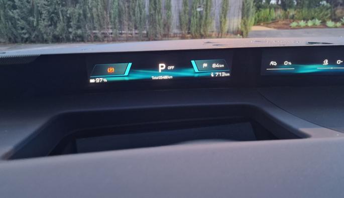 И не на последно място, измерителят: „А ще стигне ли до морето?“. Ще, защото този автомобил предлага колосалните до 805 км (WLTP) пробег с едно зареждане. Разбира се, всичко зависи от стила на каране, но по време на моето тестово шофиране около Малага, колегите ми показаха снимка на техния автомобил, която показваше 944 км при 100% заредена батерия. Нашият беше 713 км на 97%. А организаторите ни показаха снимка с 1000 км при напълно заредена батерия. Стил и пътни условия, до това се свежда всичко.