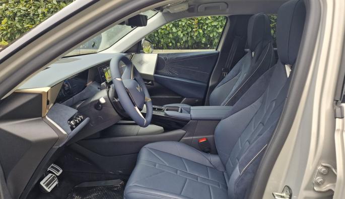 Другата основна характеристика е системата DS ACTIVE SCAN SUSPENSION, която анализира пътя напред чрез бордова камера и независимо адаптира амортисьорите в реално време. Гонен е комфорт, което е и заложено по default заложено на френската марка. Пави впечатление и че автомобилът не се усеща тежък, нещо, което предполагат размерите и капацитетът на батерията, но под 2300 кг тук е доста добър показател.
