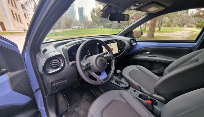 Возията, макар и омекотена, е очаквано по-твърда, но пък радиусът на завой под 5 метра, това, че двигателят мирише бензина и доста по-лесното паркиране, правят Toyota Aygo X отличен избор за градската среда, особено тази в София.